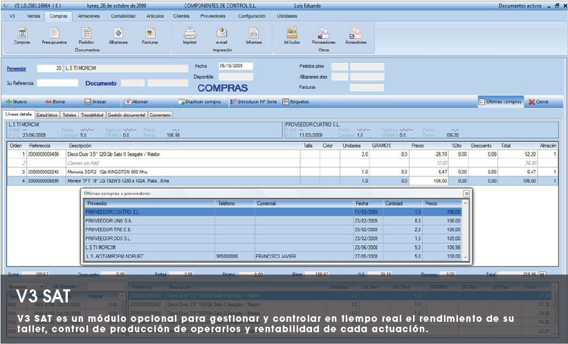 V3 SAT es un módulo opcional para gestionar y controlar en tiempo real el rendimiento de su taller, control de producción de operarios y rentabilidad de cada actuación.